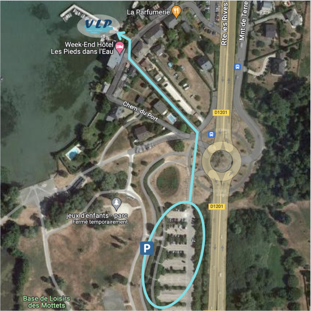 We are located in front of the Hotel Week End - Les Pieds dans l'Eau - Hameau de Terre Nue. Take advantage of the free car park located nearby, on the beach of Mottets.